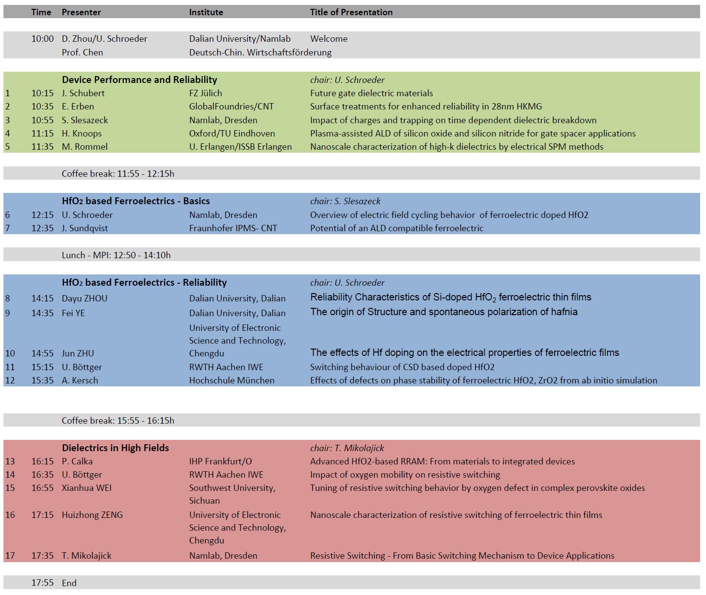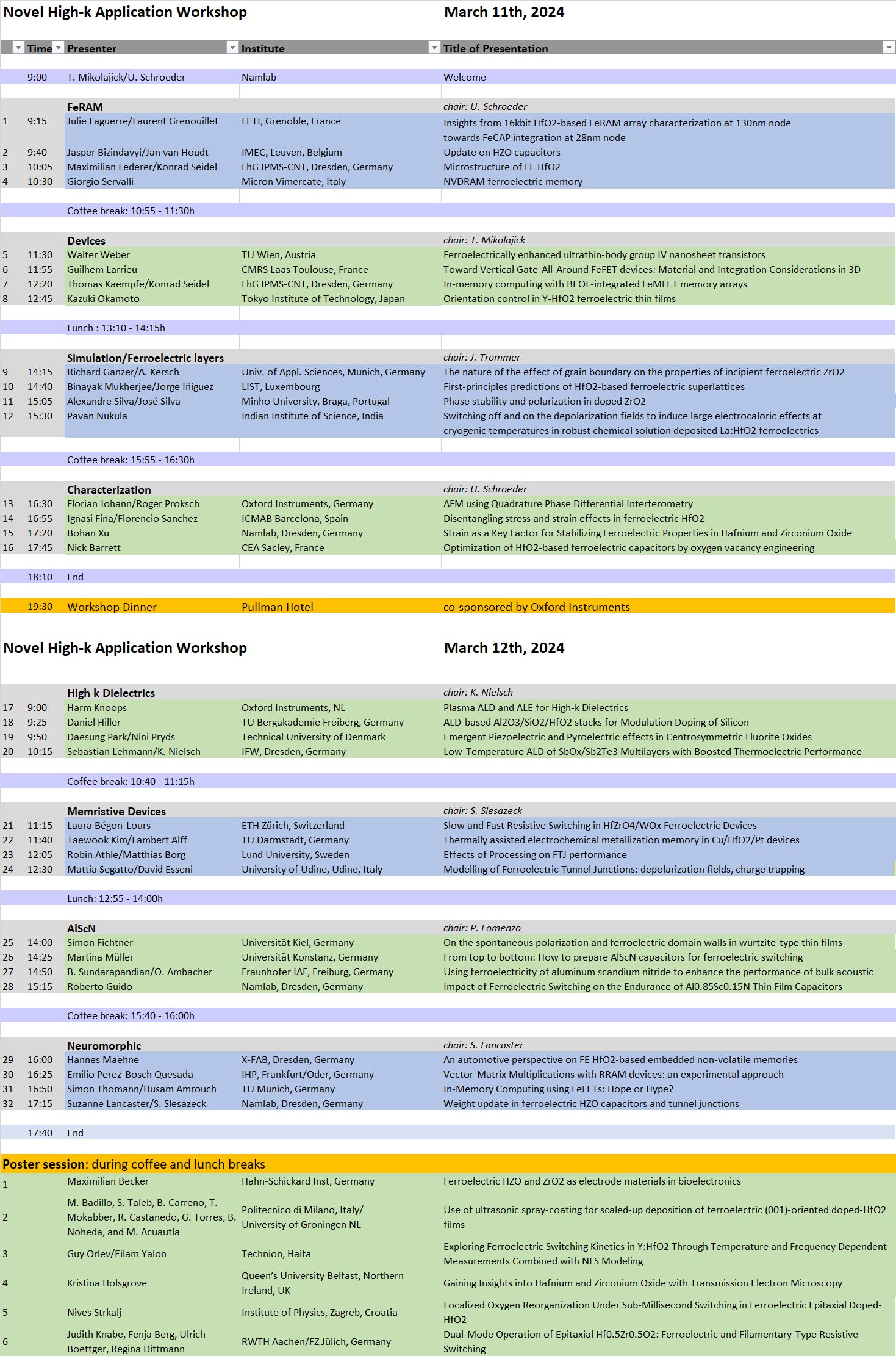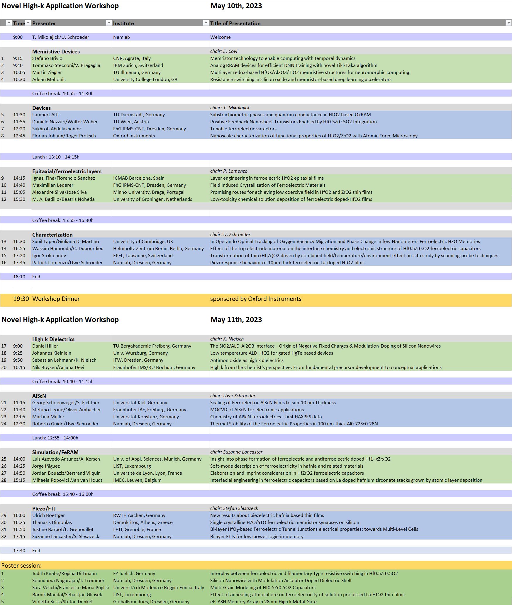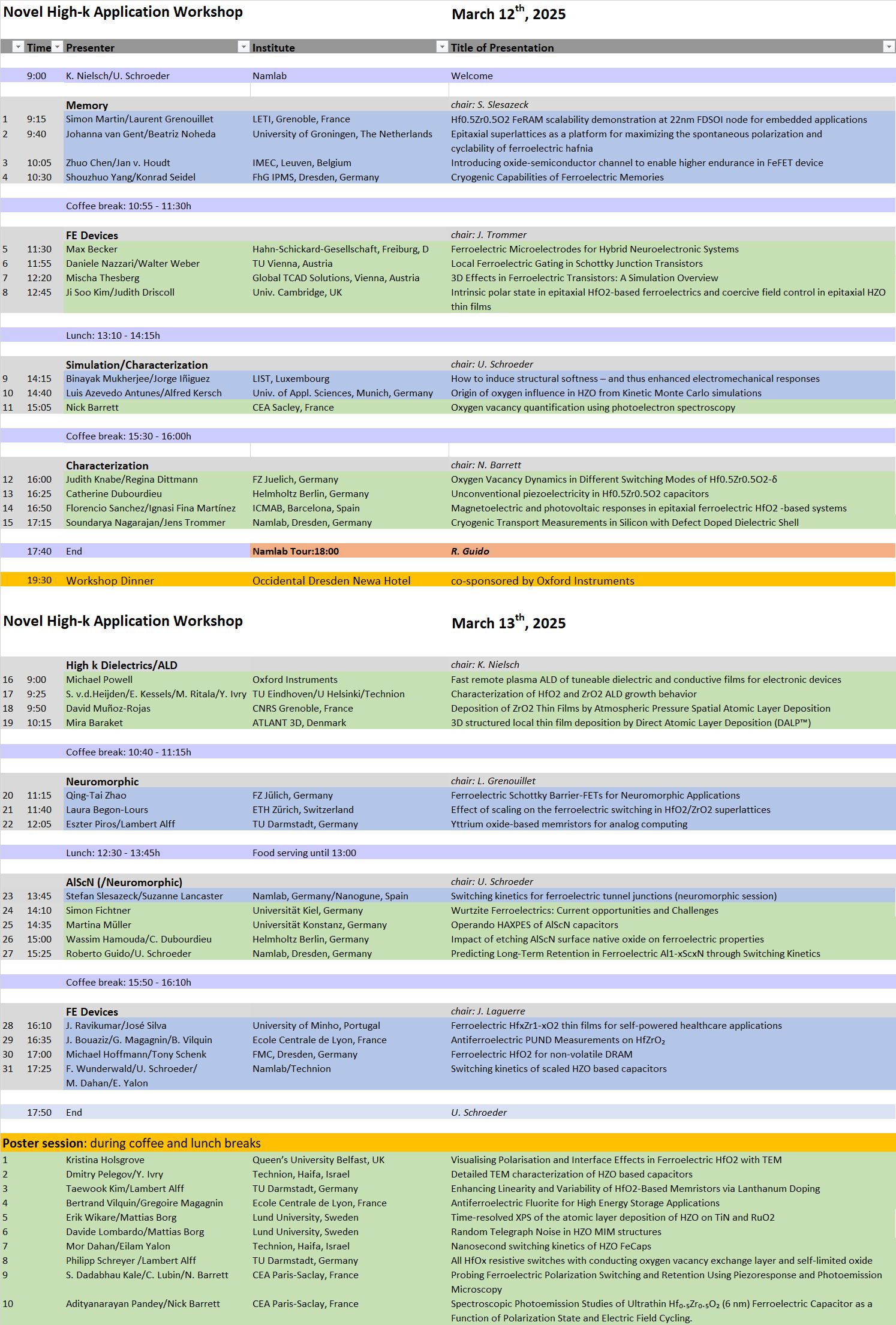 Through this series of workshops, NaMLab has established a platform where application-oriented scientists can exchange ideas and discuss recent experimental results regarding devices, process technology, reliability, and the characterization of high-k dielectrics integrated into silicon-based micro- and nanoelectronics. In recent years, discussions have focused on the formation of ferroelectric properties in fluorite (doped HfO₂, doped ZrO₂) and wurtzite (e.g., AlScN) structured ferroelectrics, as well as the application of these films.
